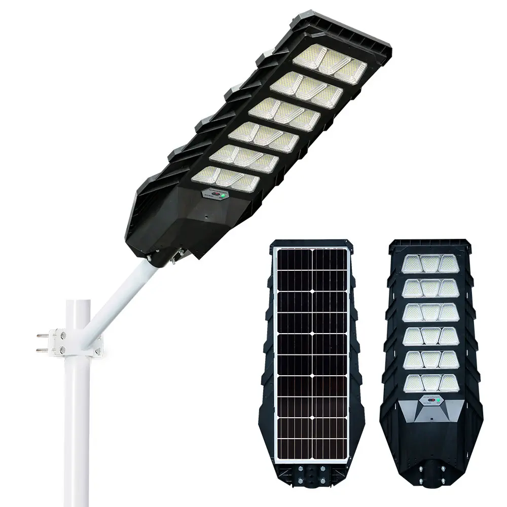 Luces solares extremadamente brillantes: las farolas solares utilizan 288 cuentas de lámpara SMD 5054 altamente eficientes con una larga vida útil y baja disminución de la luz para un brillo extremo. El rango de iluminación de las farolas solares puede alcanzar hasta 4800 pies cuadrados. pies